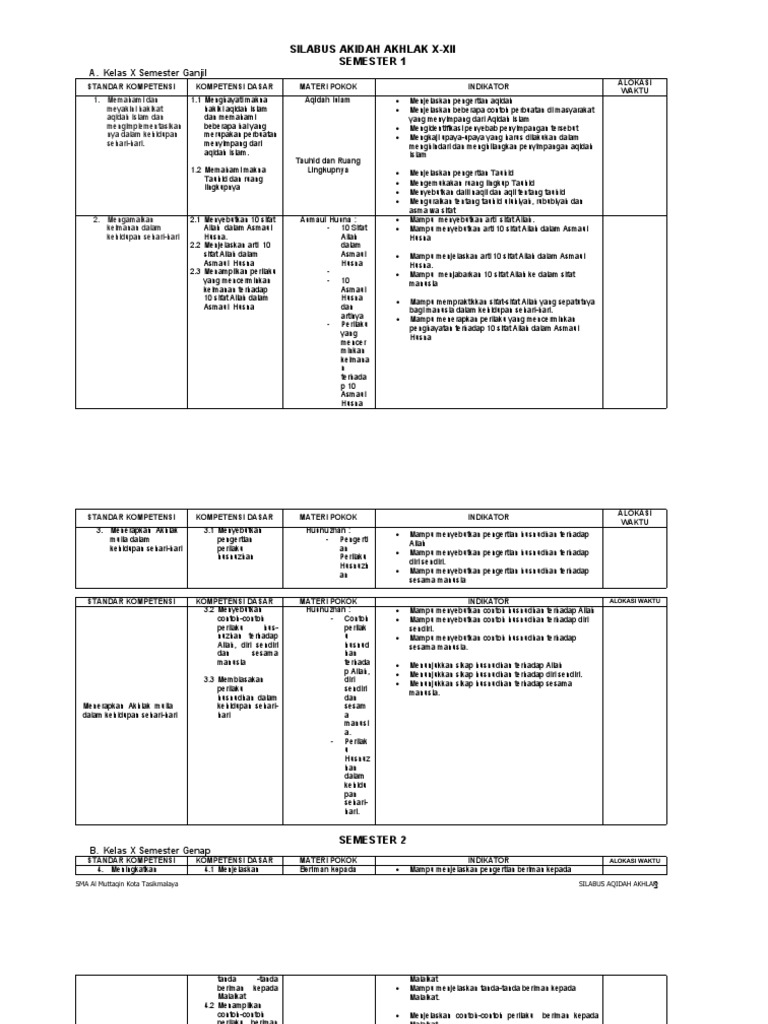 Silabus akidah akhlak kelas x revisi terbaru kurikulum 2013. Silabus mi akidah akhlak daring : Menerima, menjalankan, dan menghargai ajaran agama yang dianutnyaki 2: Silabus aqidah akhlak mi kurikulum 2013, file perangakat belajar mengajar yaitu silabus aqidah akhlaq kurikulum 2013 ini dapat anda download yang mungkin bisa tutorial rpp daring/luring versi 1 lembar. Silabus akidah akhlak kelas x/ genap kompetensi dasar.